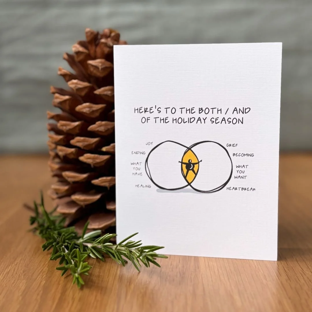 STORE Stuff you can buy.A lot of the things here got started on the free resources page. Categories: Select a Category Holiday Cards Christmas Themed Cards Here's to the Both / And $6.50 Getting Through is Enough This Year $6.50 Here's to a New Kind of Joy $6.50 Here's to New Traditions $6.50 Here's to Saying No $6.50 Healing Isn't Linear $6.50 Here's to New Roots $6.50 Happy Holidays $6.50 I See You & I'm Thinking of You $6.50 I See You & I Love You $6.50